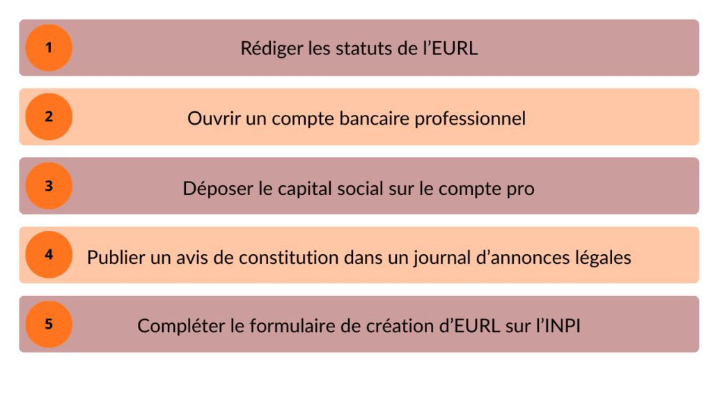 Pour constituer votre EURL, vous devez notamment accomplir les démarches suivantes.