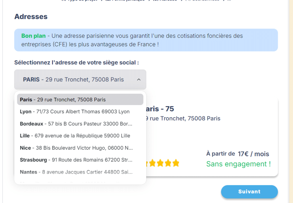 – Vous pouvez choisir une adresse qui minimise le coût de la Cotisation Foncière des Entreprises (CFE)