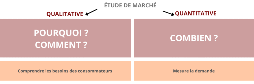 Il existe bien évidemment d’autres types de questions (Où ? Quand ? Qui ?…) auxquels les études de marché peuvent répondre. Gardez simplement à l’esprit qu’une étude quantitative repose sur des données mesurables, quantifiables, et qu’une étude qualitative permet d’appréhender le ressenti et les habitudes des consommateurs.
